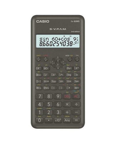 The Casio FX82MS Non-Programmable Scientific Calculator is a standard scientific calculator for students studying mathematics and science at school level. It features an ergonomic design and large two-line display. It offers 240 integrated functions and switches seamlessly between SCI/FIX and ENG modes.