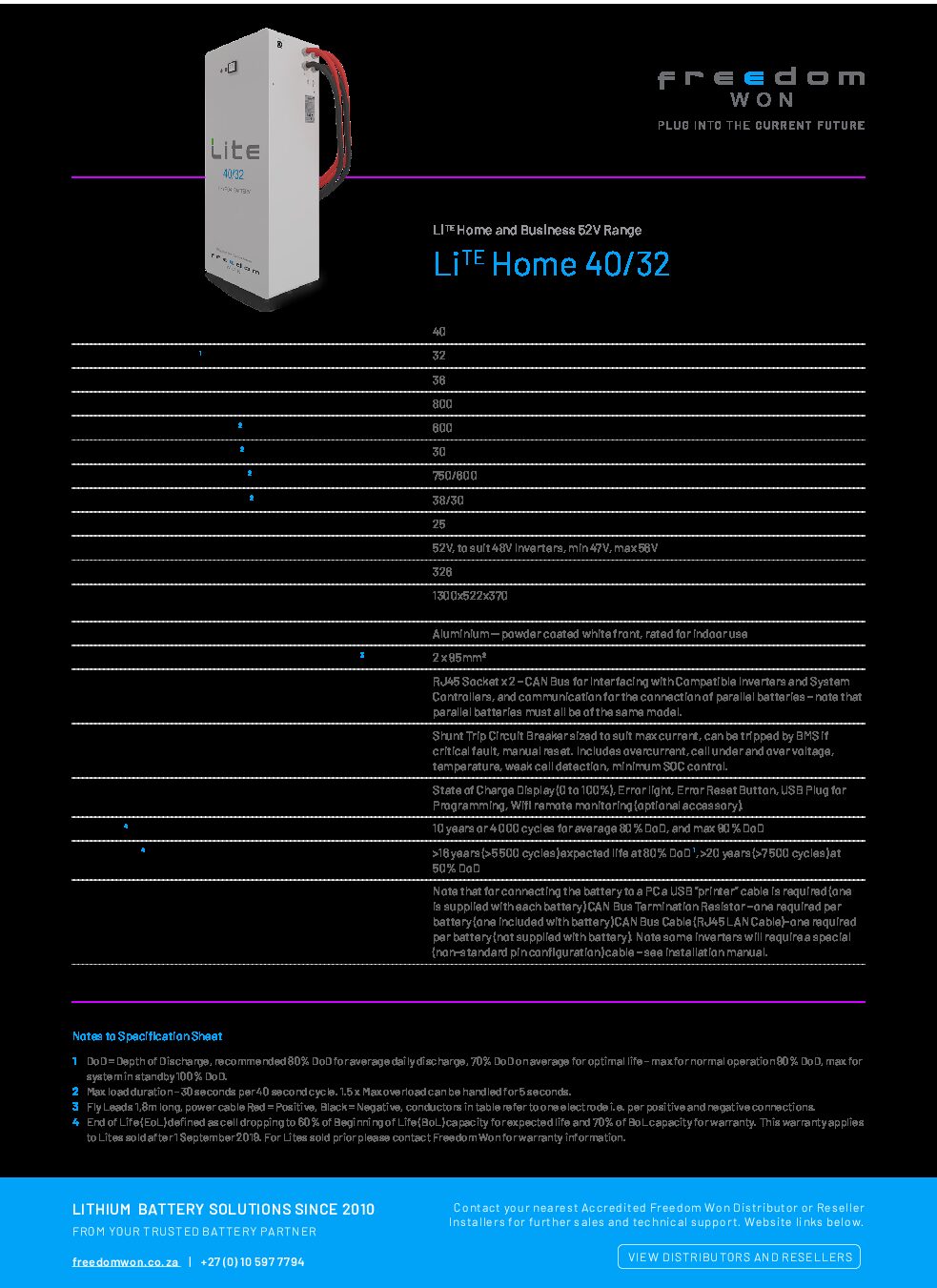 10 years or 4 000 cycles for average 80% DoD, and max 90% DoD