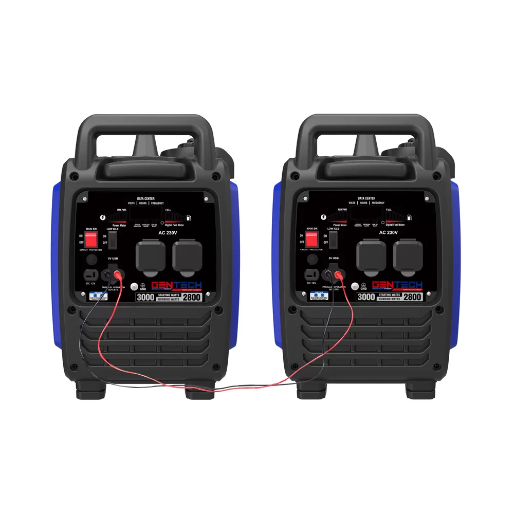 Engine Displacement (CC)139Starting MethodRecoilVoltage(V)230Amperage (A)12,17Fuel Tank Capacity (L)6Noise Level (dB’s) at 7m65Rated Power (kVA)2,8Max Power (kVA)3Weight (Net) (kg)28IgnitionRecoilRate Frequency50HzDigital Inverter ModuleYes3-1 Digital MeterYesSmart Engine ControlYes2.1 Amp USB OutputYesParallel Cables IncludedYesEconomic Low Idle SettingYesCont. Running Time @50% Load (hrs)5Cont. Running Time @100% Load (hrs)3Noise level@ 100% Load@ 7m