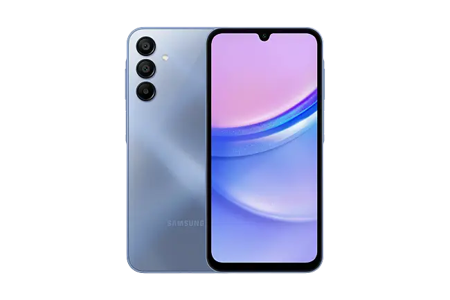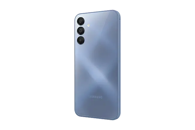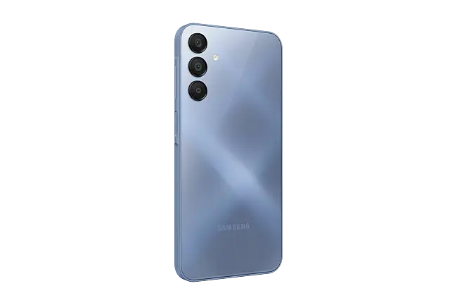 Designed to fulfill. The Galaxy A15 showcases its refined aesthetics through an intuitive frame, glossy backcover and tidy camera layout. Available in Blue Black, Blue, Light Blue and Yellow.